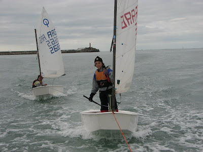 Salimos a navegar alrededor de las 13Hs. con 5 nudos del NO muy inestable rotando hasta al SO y calmando hasta no poder navegar. Mucha ola que pegaba de través, de popa y esto hacia que sea muy difícil navegar, a las 15:30Hs. volvimos al club y tuvieron el entrenamiento físico luego de almorzar y desarmar los barcos.